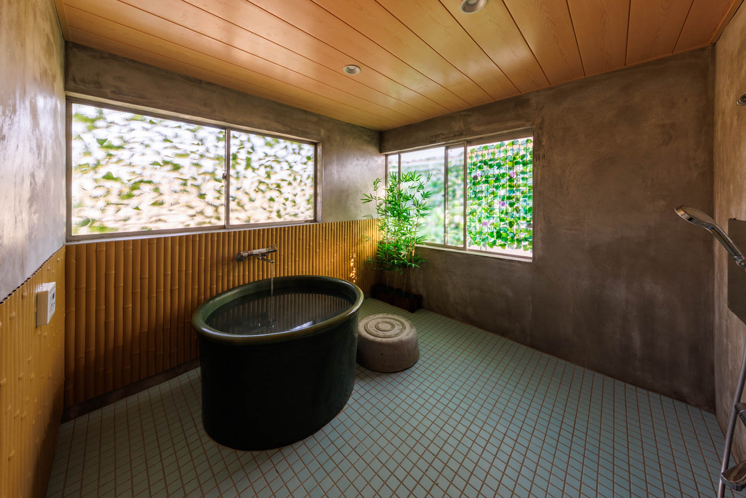 海から戻ったら、まずは信楽焼の湯へ。土のぬくもりをまとったやわらかな湯あたりで、潮も疲れもすっと抜けていきます。朝は差し込む光、夜は湯気越しの星。季節の匂いを感じながら、ただ深呼吸するひとときをどうぞ。小さなお子さま連れでも使いやすい深さに配慮し、常に清潔に保っています。