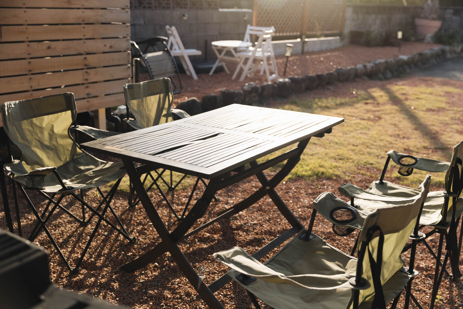 庭には薪サウナと外気浴スペース、屋根付きのBBQテラスをご用意。火の音と香りに包まれ、じんわり温まったら外の風でととのう。雨の日も濡れずに楽しめます。1日1組だけの完全貸切なので、順番待ちも気兼ねもありません。思い思いのペースで、からだと心をゆるめてください。